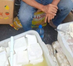 أحد المواطنين اكتشف أن الجبنة المشللة التي اشتراها بسعر 30 ألف ليرة للكيلو غرام من سيارة متنقلة تحولت إلى سائل أصفر بمجرد غسلها بالماء!.. هكذا يجد المواطن نفسه ضحية الغلاء أو الغش.