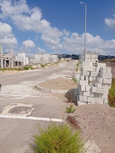 وقد أنجز ما يقارب ٧٠ بالمئة من المقاسم بمراحل متفاوتة، منها ما أصبح على الهيكل من دون إكساء، ومنها ما زال بين المرحلتين الأولى والمتوسطة.