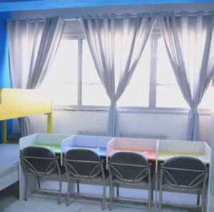 يتم تقسيم الأطفال إلى مجموعات بحسب الأعمار، بينما يتابع الأطباء المقيمون حالتهم الصحية بانتظام.