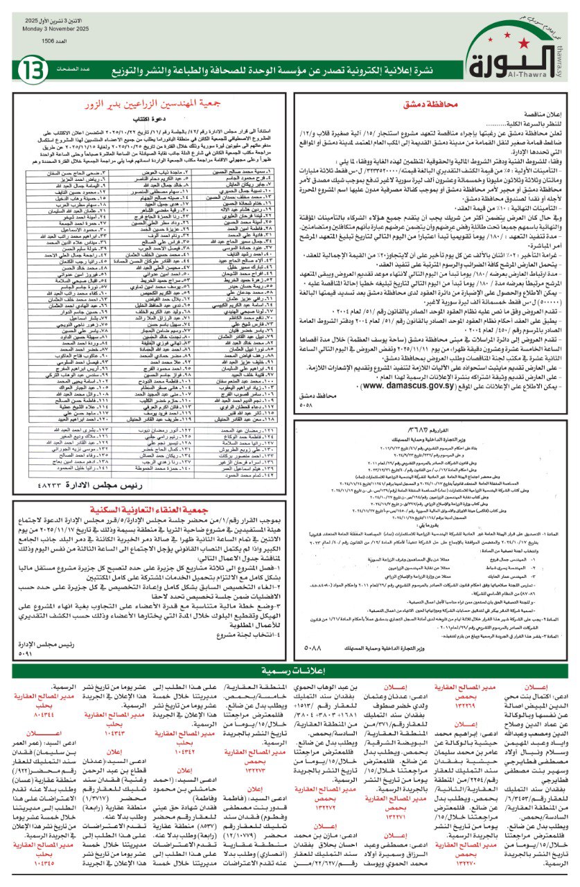 إعلانات العدد 1506 الاعلانات pdf # صحيفة الثورة في 3 نوفمبر , 2025 بتوقيت دمشـــق Loading... Taking too long? Reload document | Open in new tab تحميل العدد كاملاً [7.33 MB] مشاركة المقال: FacebookTwitterWhatsAppTelegramFacebook MessengerLinkedinطباعة