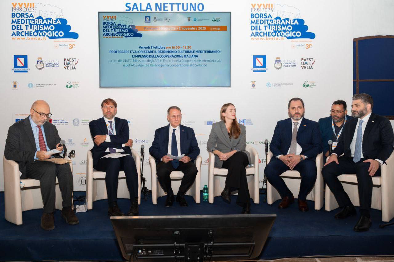 في إطار  مشاركة سوريا في المعرض المتوسطي للسياحة الأثرية الذي يقام في مدينة بيستوم الإيطالية، تفقد وزير السياحة مازن الصالحاني و وزير الثقافة محمد ياسين صالح الأجنحة المشاركة في المعرض، حيث اطّلعا على أحدث التجارب العالمية في مجال السياحة الأثرية، واستعرضا أفضل الممارسات في توظيف التراث لصناعة سياحة مستدامة.