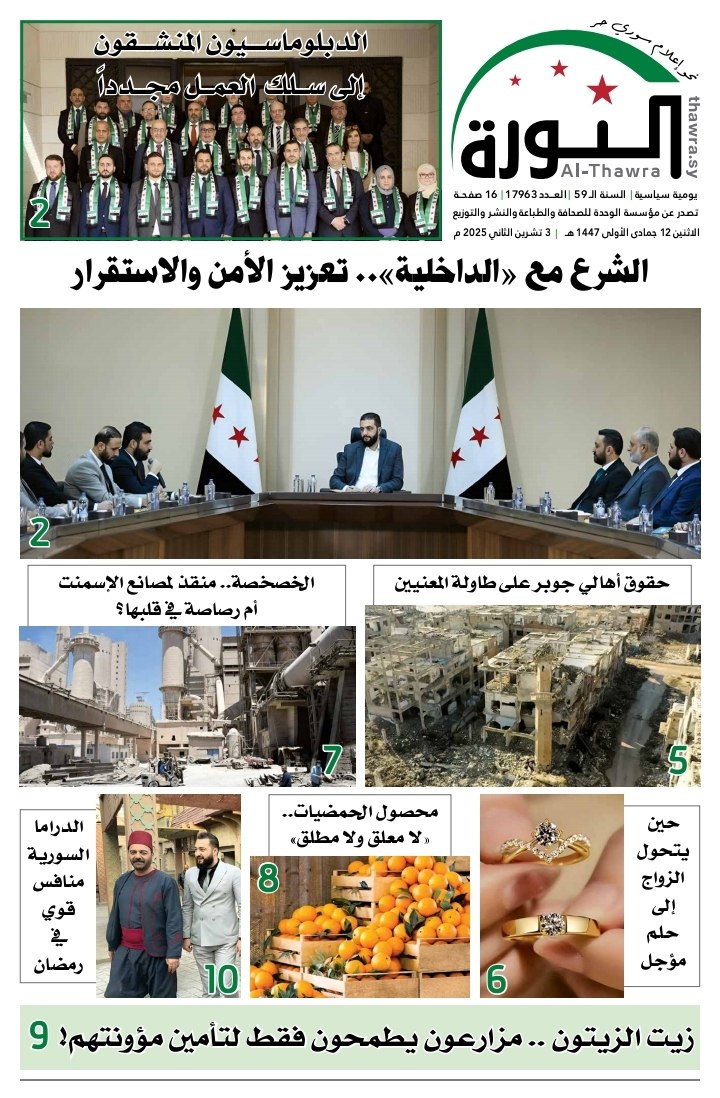 صحيفة الثوؤة العدد 17963 الصحيفة PDF # صحيفة الثورة في 3 نوفمبر , 2025 بتوقيت دمشـــق Loading... Taking too long? Reload document | Open in new tab تحميل العدد كاملاً [3.29 MB] مشاركة المقال: FacebookTwitterWhatsAppTelegramFacebook MessengerLinkedinطباعة