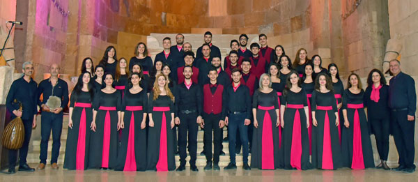 ويلفت إلى أن عدد المشاركين في الكورال يبلغ 40 فرداً تقريباً، مقسمين إلى أربعة أصوات، فهناك أصوات النساء الحادة “سبرانو” والمنخفضة “آلتو”، وأصوت الرجال حادة الطبقة “تينور” وخفيضة الطبقة “باص”، ويرافقهم فرقة موسيقية تضم الآلات التالية: “بيانو، عود، أكورديون، كمان، فلوت، كلارينيت، درامز، طبلة، رق”.