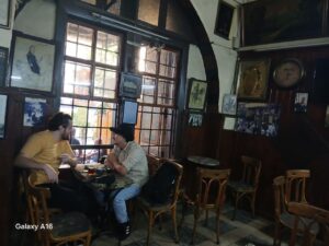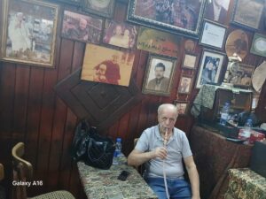 من يجلس هنا يعيش لحظات من الماضي بكل تفاصيله، من الكراسي الخشبية العتيقة إلى الصور التي تزين الجدران.