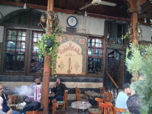 وفي زاوية المقهى، يجلس الحكواتي على كرسيه الخشبي العريق، يستعد كل مساء لرواية حكايات “عنترة وعبلة” و”الزير سالم”، وسط جمهورٍ يتابع بشغف ويصفق كما لو أنه يسمعها للمرة الأولى، في مشهد يعيد للذاكرة زمن المجالس الدمشقية القديمة.