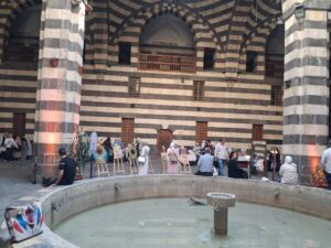 من جانبه، أعرب فادي سليمان، أحد زوار البازار، عن تقديره لهذه المبادرة التي تستضيفها “خان أسعد باشا”، أحد المعالم الدمشقية التاريخية العائدة للعصر العثماني. يؤكد فادي على أهمية استثمار المباني التراثية في مثل هذه الفعاليات الخيرية والإنسانية، قائلاً: “هذا الشيء مهم كثيراً لجعل الناس من خلال هذه النشاطات والفعاليات التي تلامس الناس واحتياجاتها، أن يكونوا قريبين من المباني التراثية والتاريخية”، مشيداً بدعم المنتج المحلي، مشيراً إلى أن ما يراه من إبداعات يدوية يقدمها سيدات وشباب وفنانون، “يحافظ بشكل أو بآخر على التراث الدمشقي الحي، التراث اليدوي الذي افتخر فيه بشكل دائم”.
