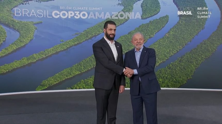 وصل الرئيس أحمد الشرع إلى قاعة انعقاد قمة المناخ “COP30” بمدينة بيليم في البرازيل، حيث كان في استقباله الرئيس البرازيلي لويس إيناسيو لولا دا سيلفا.