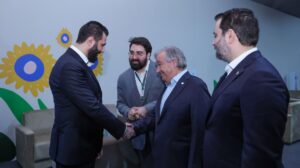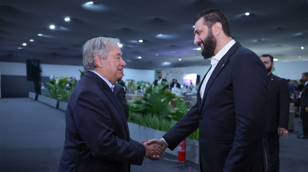 التقى الرئيس أحمد الشرع مع الأمين العام للأمم المتحدة أنطونيو غوتيريش، بحضور وزير الخارجية والمغتربين أسعد حسن الشيباني، وذلك على هامش أعمال مؤتمر قمة المناخ (COP30) المنعقد في مدينة بيليم البرازيلية.