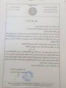 وأضاف أن القرار لاقى قبولاً واسعاً من مختلف الشرائح، ومن المتوقع أن يعود بالنفع على المهندسين من خلال زيادة حجم العمل خلال شهر تشرين الثاني الحالي.