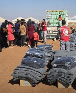 بين رئيس فرع الهلال الأحمر في درعا الدكتور أحمد المسالمة لصحيفة الثورة، أن فرق الفرع التطوعية وزعت اليوم 556 حصة ألبسة شتوية على العائلات المهجرة من السويداء الوافدة إلى بلدتي جمرين وغصم.