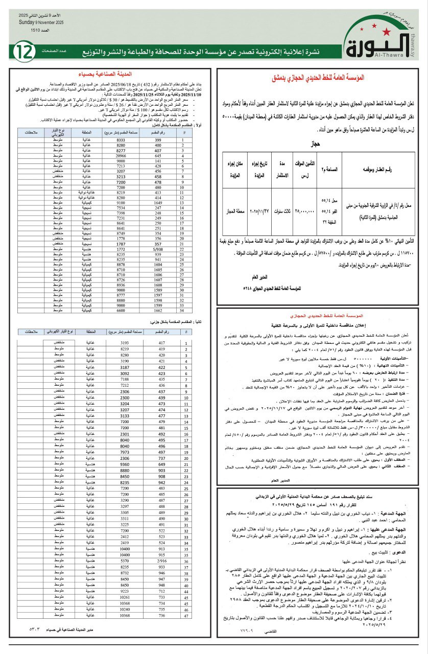 اعلانات العدد 1510 الاعلانات pdf # صحيفة الثورة في 9 نوفمبر , 2025 بتوقيت دمشـــق Loading... Taking too long? Reload document | Open in new tab تحميل العدد كاملاً [4.48 MB] مشاركة المقال: FacebookTwitterWhatsAppTelegramFacebook MessengerLinkedinطباعة