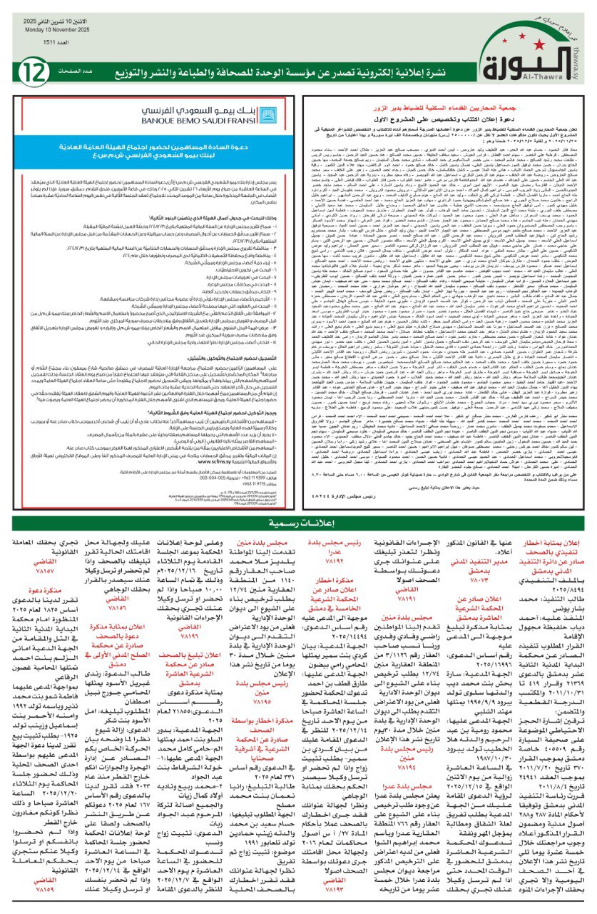 اعلانات العدد 1511 الاعلانات pdf # صحيفة الثورة في 10 نوفمبر , 2025 بتوقيت دمشـــق Loading... Taking too long? Reload document | Open in new tab تحميل العدد كاملاً [4.57 MB] مشاركة المقال: FacebookTwitterWhatsAppTelegramFacebook MessengerLinkedinطباعة