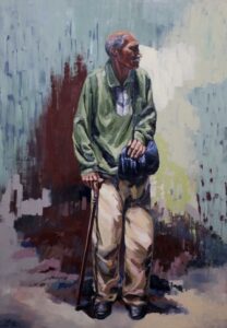 أما لوحتها “شارع رقم 1” فتستعرض صورة لرجل مسن يسير ببطء في شارع ضيق يفصل بين منزله وعمله.