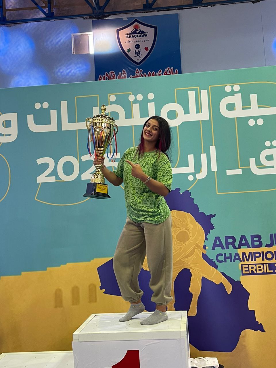 طموحي التأهل للأولمبياد، بهذه الكلمات وبكل ثقة بدأت بطلتنا ساندرا عبد الوهاب عبيد اللقاء معها، ساندرا التي دخلت لعبة الجودو وعمرها أربع سنوات، تعلمت ألف باء اللعبة من داعمها الأول والدها عبد الوهاب عبيد، بطل جمهورية سابق، كان له الفضل بعشق الجودو المبكر عند ساندرا التي حققت ميداليات الذهب والفضة والبرونز ببطولات الجمهورية، والعرب وغرب آسيا وآسيا.