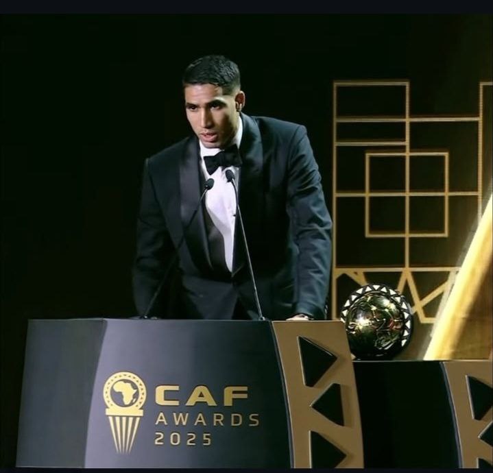 توّج النجم المغربي أشرف حكيمي، بجائزة أفضل لاعب في إفريقيا لعام (2025) عن جدارة واستحقاق، بعد موسم استثنائي، بمساهمته الفعّالة مع ناديه باريس سان جيرمان في التتويج القاري، بدوري أبطال أوروبا للمرة الأولى في تاريخ النادي الفرنسي، إضافة للقب الليغ آن، وغيرها من الإنجازات والألقاب التي حققها مع أبناء باريس، من خلال مهاراته الفردية ومساهماته التهديفية، إضافة إلى دوره الكبير في تأهل أسود الأطلس، لنهائيات كأس العالم القادمة (2026) في كل من الولايات المتحدة الأمريكية وكندا والمكسيك.