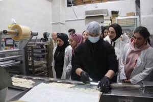 وفي المرحلة الثانية من الجولة، تجول الطلاب داخل معمل المخبوزات والمعجنات الغذائية، حيث شاهدوا خطوط إنتاج البسكويت والويفر والمعجنات، وتعرفوا على آليات مراقبة الجودة المتبعة في مختلف مراحل الإنتاج، وقد أبدى الطلاب اهتماماً واضحاً بالتقنيات الحديثة وأنظمة التشغيل الآلي المستخدمة في خطوط التصنيع.